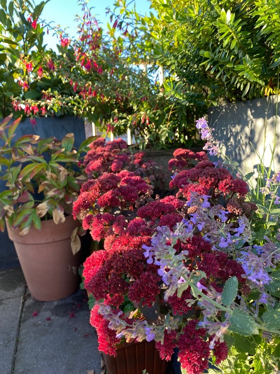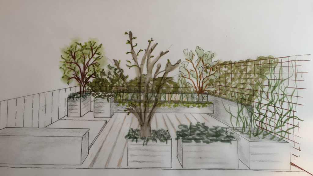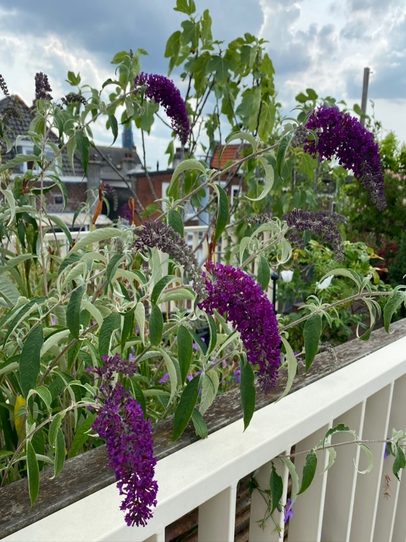 Een groot dakterras, midden in de Jordaan. Droogte, zon en wind, dat zijn de uitdagingen bij het ontwerp. Door grote bakken te kiezen en planten die tegen deze omstandigheden bestand zijn, kun je toch heel ver komen.