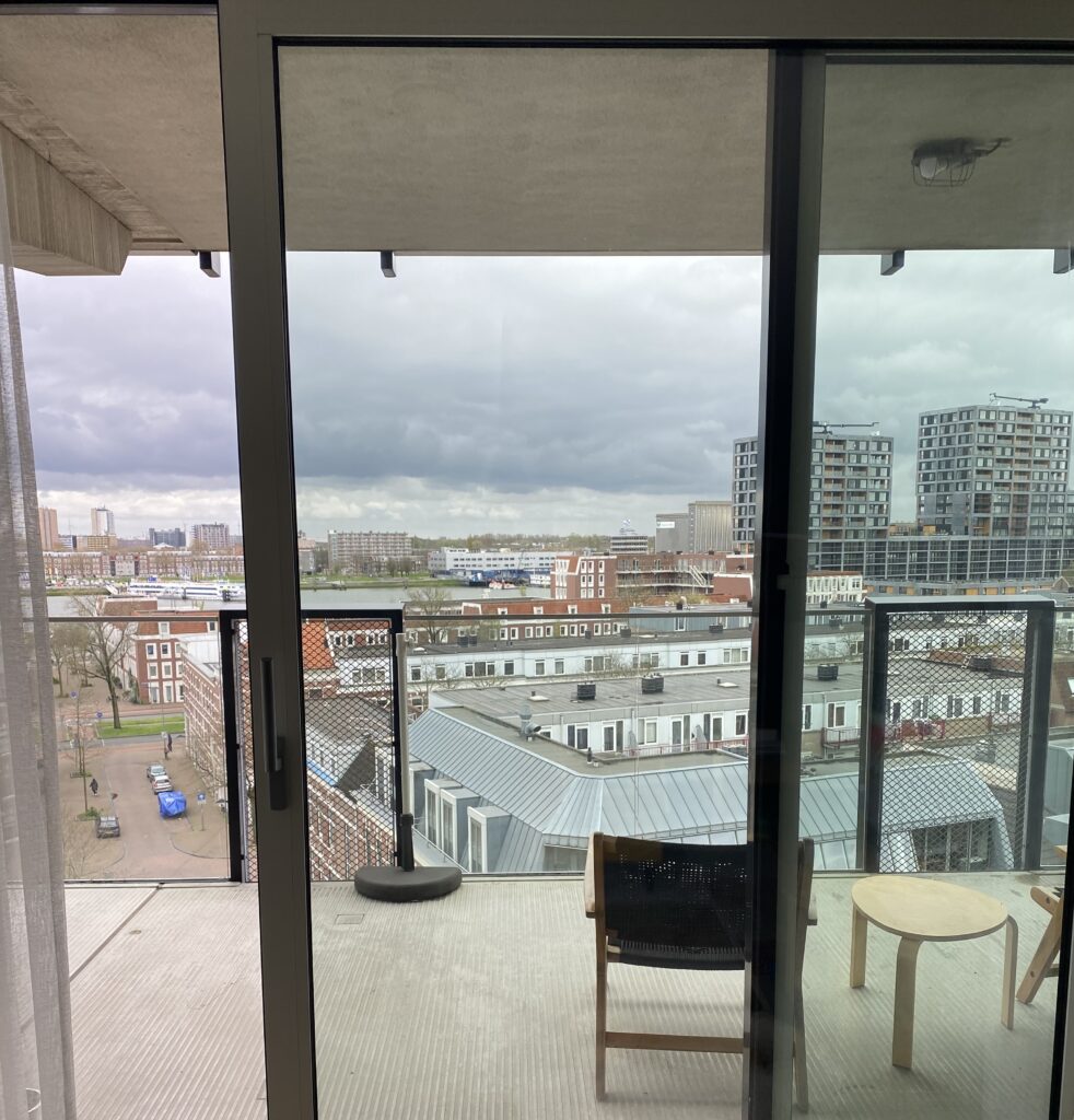 Een groot balkon met een fantastisch uitzicht. Maar het ontbrak aan groen. Dit hebben we opgelost met grote bakken, want dat voorkomt uitdroging en geeft volume.